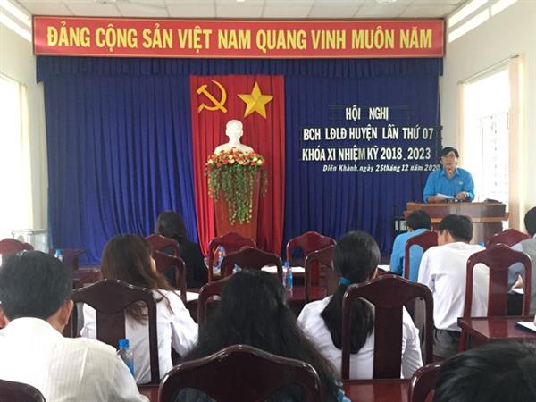 Ngày 25/12/2020, Liên đoàn Lao động huyện Diên Khánh tổ chức Hội nghị Ban Chấp hành LĐLĐ huyện khóa XI, nhiệm kỳ 2018-2023.