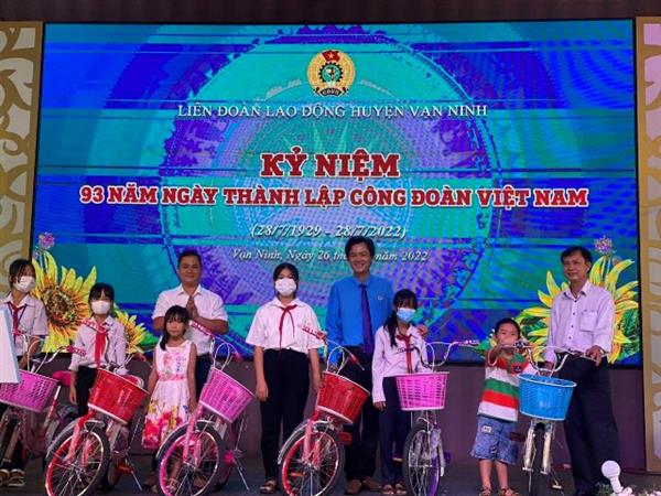 Đồng chí Nguyễn Thành Trung – Chủ tịch LĐLĐ huyện cho biết: 93 năm qua, phát huy truyền thống vẻ vang này, các cấp công đoàn huyện Vạn Ninh đã làm tốt công tác chăm lo, bảo vệ quyền và lợi ích hợp pháp chính đáng cho người lao động. Chỉ riêng 6 tháng đầu năm 2022, 100% cơ quan, đơn vị tổ chức Hội nghị cán bộ, công chức, viên chức và Hội nghị người lao động, hỗ trợ kinh phí xây nhà Mái ấm Công đoàn cho 3 đoàn viên, tặng 260 phần quà cho công nhân, viên chức, lao động (CNVCLÐ) khó khăn với tổng trị giá 130 triệu đồng.