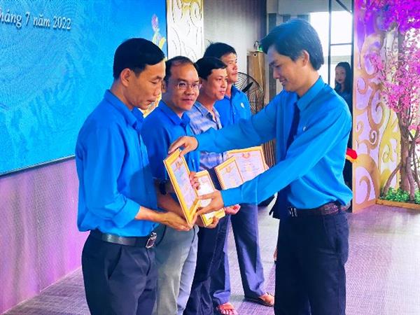 Đ/c Nguyễn Thành Trung - Chủ tịch LĐLĐ huyện trao giấy khen cho các tập thể, cá nhân xuất sắc