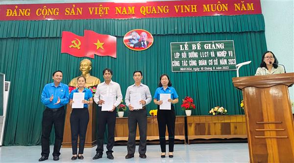 Ngày 10/8/2023, Liên đoàn Lao động (LĐLĐ) thị xã Ninh Hòa phối hợp với Trung tâm Chính trị thị xã Ninh Hòa bế mạc lớp bồi dưỡng cán bộ công đoàn cơ sở năm 2023.