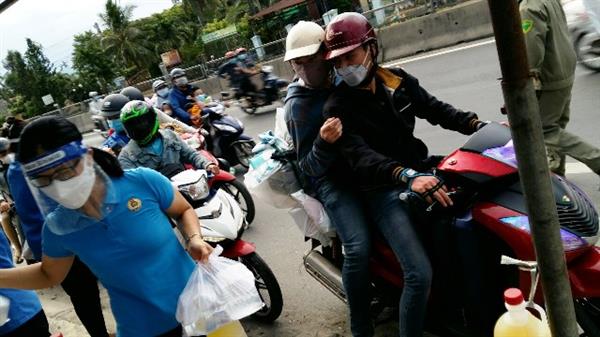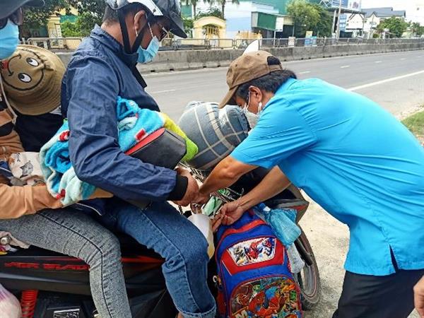 Từ những ngày đầu tiên, khi dịch bệnh Covid lần thứ 4 bùng phát trên địa bàn toàn tỉnh. Thực hiện sự chỉ đạo của Ban Cứu trợ Covid - 19 thành phố, LĐLĐ thành phố đã triển khai kế hoạch tiếp sức thực phẩm cho bà con nhân dân từ các tỉnh phía Nam tổ chức từng đoàn, di chuyển bằng xe mô tô trở về quê gồm thức ăn, hộp sữa, chai xăng.