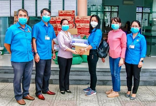 Dịp này, LĐLĐ thành phố cũng trao 13 suất quà cho các CĐCS; trong đó 12 suất trị giá 5 triệu đồng tiền mặt cho 12 CĐCS khối xã phường nằm trong vùng có nguy rất cơ cao đang bị phong tỏa tạm thời và 10 triệu đồng cùng 30 tấm kính chắn giọt bắn cho CĐCS Đội thanh niên xung kích thành phố.