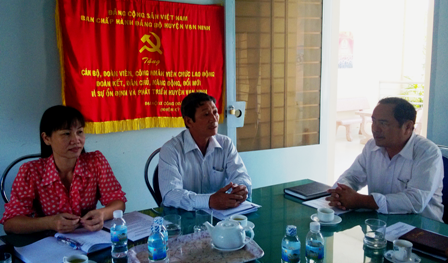 Tham dự buổi làm việc có các đồng chí: Nguyễn Văn Hài - Phó Chủ tịch Thường trực LĐLĐ tỉnh, Võ Văn Thường – Phó bí thư thường trực huyện ủy, Đinh Văn Nam – Phó Ban Dân vận huyện ủy, lãnh đạo Ban Tài chính, Văn phòng LĐLĐ tỉnh.