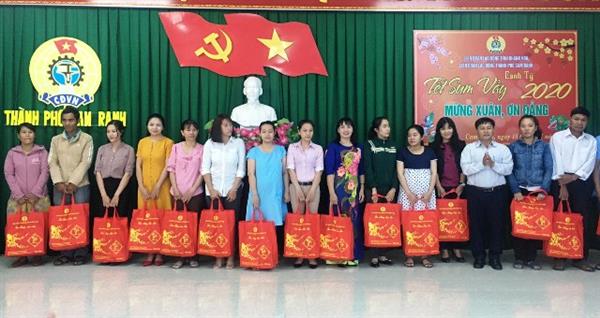 Tại chương trình “Tết Sum vầy năm 2020”, Liên đoàn Lao động thành phố đã trao 80 suất quà cho CNVCLĐ có hoàn cảnh khó khăn, bị bệnh hiểm nghèo mỗi suất trị giá 500.000đ (quà 200.000đ, tiền mặt 300.000đ) từ nguồn hỗ trợ Quỹ xã hội Công đoàn Khánh Hoà và 20 suất quà hỗ trợ của Siêu thị Co.op mart Cam Ranh (trị giá 300.000đ/suất). Chương trình đã kết nối những tấm lòng hướng về những CNVCLĐ khó khăn, đau bệnh với tinh thần tương thân tương ái, thực hiện phương châm “không để đoàn viên, người lao động nào không có tết” để động viên, khích lệ và đem lại niềm vui cho CNVCLĐ còn nhiều khó khăn, vất vả nhân dịp Tết đến Xuân về.