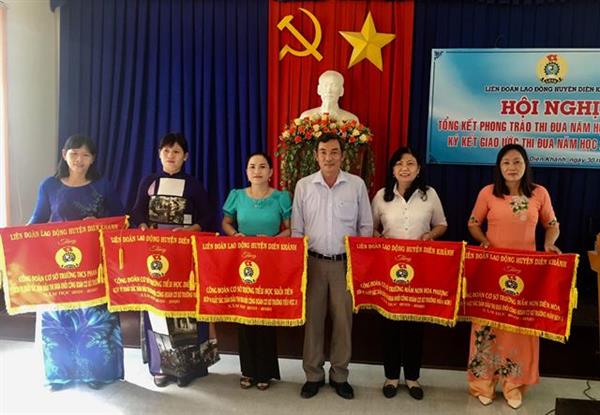 Bên cạnh đó, các hoạt động chăm lo đến người lao động luôn được các cấp công đoàn thường xuyên quan tâm như đề xuất công đoàn cấp trên hỗ trợ khó khăn cho đoàn viên nhân dịp tết Nguyên đán Canh Tý 2020; Tháng Công nhân; hỗ trợ khó khăn do ảnh hưởng dịch Covid-19 (trên 80 đoàn viên được hỗ trợ 40 triệu đồng); 02 đoàn viên được hỗ trợ kinh phí xây nhà Mái ấm công đoàn (Mỗi suất 50 triệu đồng, đoàn viên trường MN Suối Hiệp và THCS Nguyễn Du)… Các phong trào thi đua, các cuộc vận động của ngành tiếp tục được triển khai có hiệu quả. Công tác tuyên truyền, giáo dục vận động với hình thức đổi mới, nội dung thiết thức phù hợp đã giúp đoàn viên, giáo viên phấn khởi, tin tưởng vào chủ trương của Đảng, Nhà nước góp phần hoàn thành xuất sắc nhiệm vụ năm học của nhành Giáo dục huyện Diên Khánh.