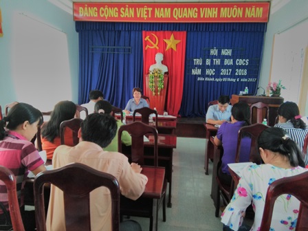 Phát huy hiệu quả phong trào thi đua trong khối CĐCS trường học, LĐLĐ huyện Diên Khánh đã tổ chức hội nghị thi đua trù bị chấm điểm và xếp loại CĐCS năm học 2017-2018 gồm 05 khối thi đua CĐCS trường học với 60 đơn vị.