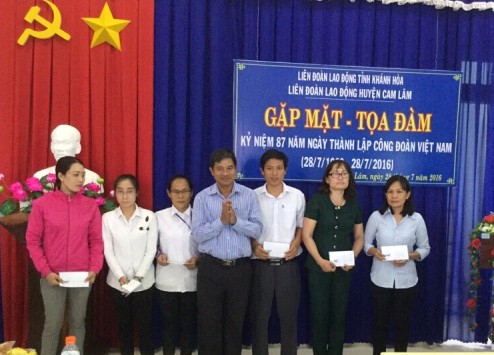 Sáng ngày 28/7, tại hội trường cơ quan Liên đoàn lao động huyện Cam Lâm, LĐLĐ huyện Cam Lâm đã tổ chức kỷ niệm 87 năm thành lập Công đoàn Việt Nam (28/7/1929-28/7/2016). Đến dự buổi kỷ niệm có các đồng chí là lãnh đạo Huyện uỷ, Uỷ ban nhân dân huyện, UB MTTQVN huyện Cam Lâm cùng gần 50 cán bộ CĐCS trong toàn huyện.
