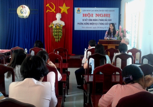Sáng ngày 20/7, Liên đoàn Lao động huyện Diên Khánh tổ chức hội nghị sơ kết công đoàn 6 tháng đầu năm và triển khai nhiệm vụ 6 tháng cuối năm 2016 với hơn 70 đại biểu các CĐCS đến dự.