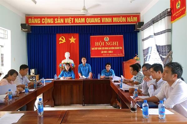 Sáng ngày 16/7, Liên đoàn Lao động (LĐLĐ) huyện Khánh Vĩnh tổ chức Hội nghị Ban chấp hành Công đoàn huyện lần thứ 6 khóa VIII nhiệm kỳ 2018-2023. Tham dự và chỉ đạo Hội nghị có đồng chí Nguyễn Thị Hằng - Phó Chủ tịch LĐLĐ tỉnh, chủ trì hội nghị có đồng chí Nguyễn Thị Việt – Chủ tịch LĐLĐ huyện cùng 17 đồng chí là ủy viên Ban chấp hành, ủy viên Ủy ban kiểm tra LĐLĐ huyện.
