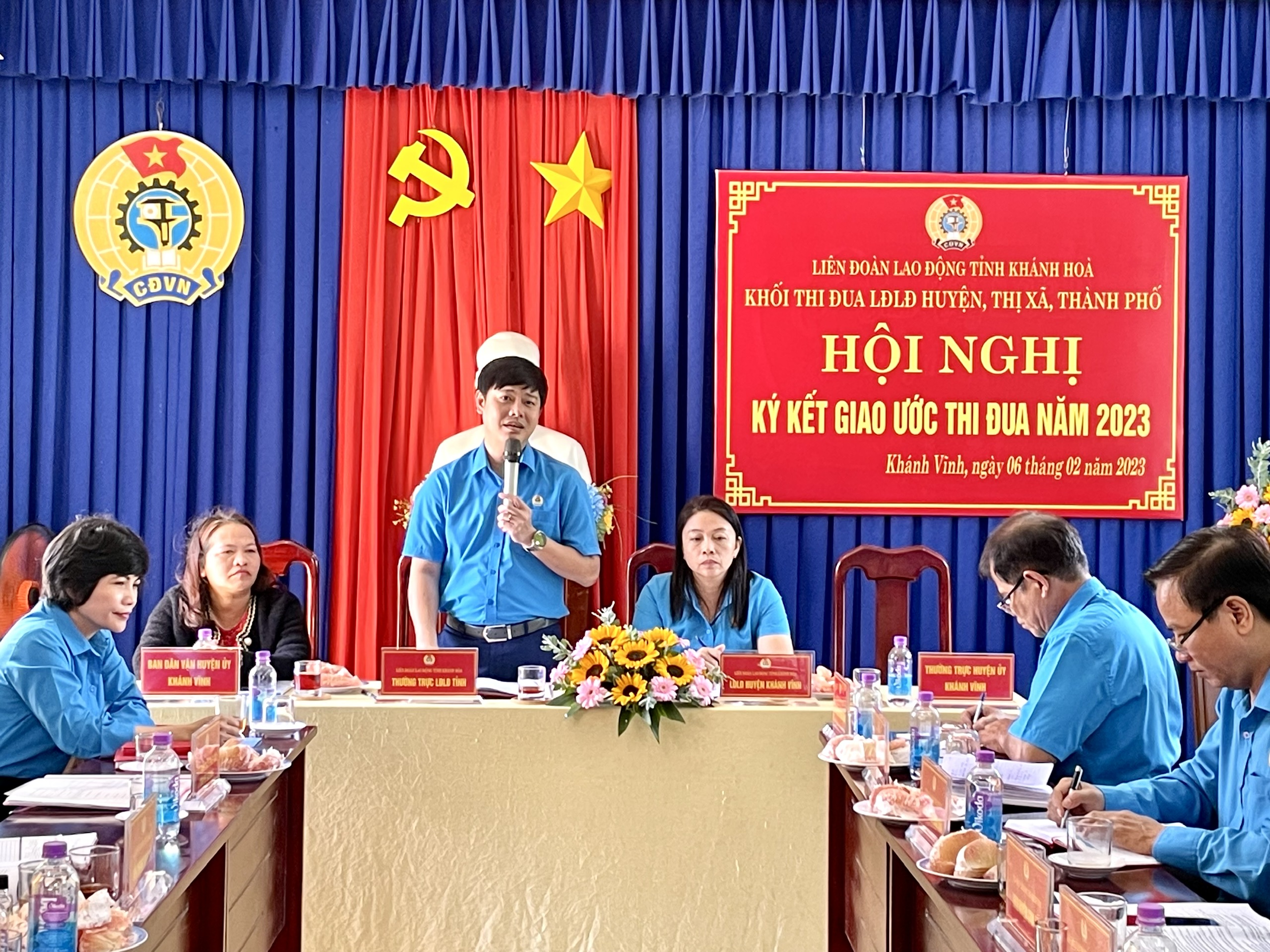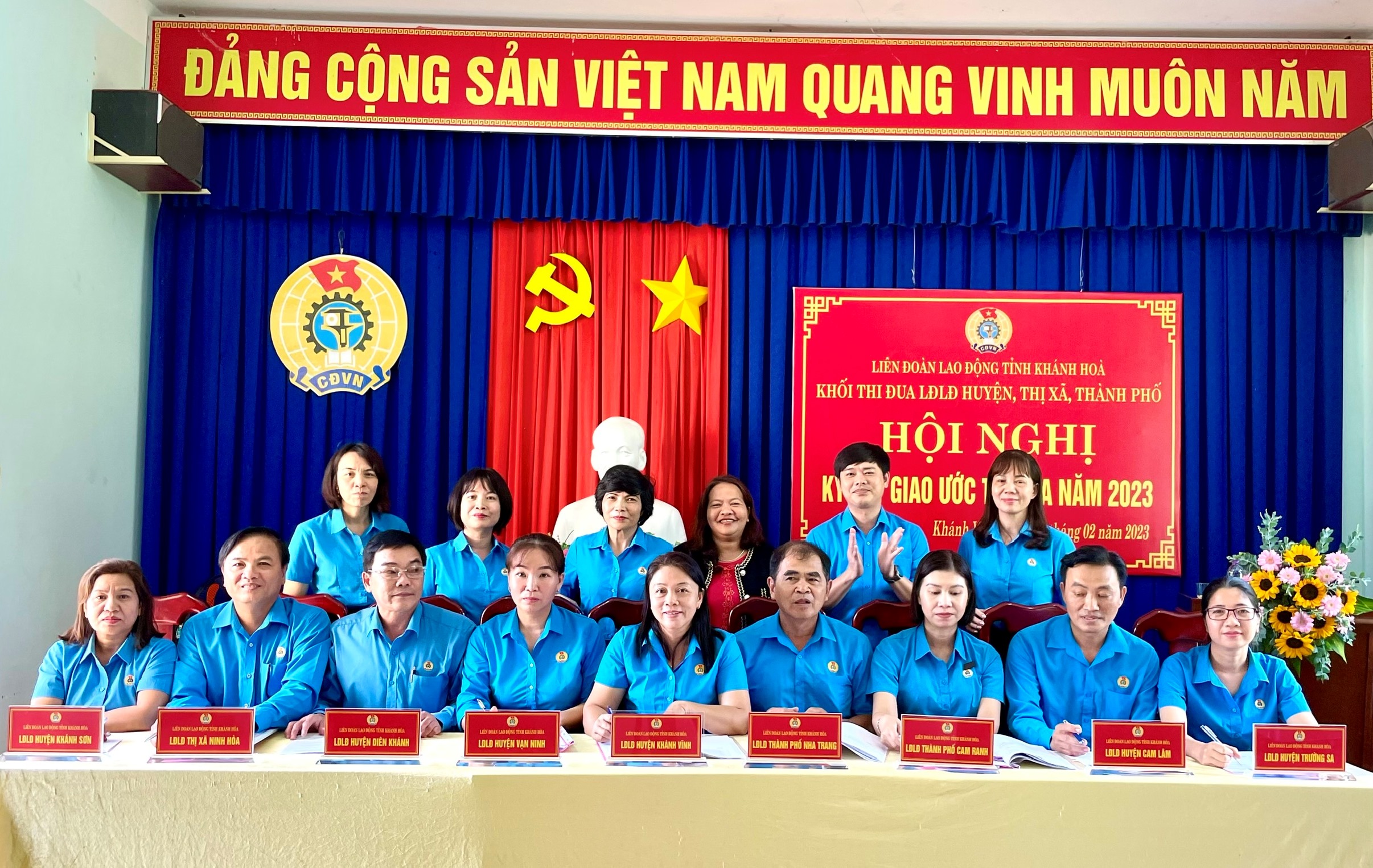 Vừa qua, Liên đoàn Lao động huyện Khánh Vĩnh tổ chức Hội nghị ký kết giao ước thi đua công đoàn năm 2023 khối thi đua LĐLĐ huyện, thị xã, thành phố. Dự hội nghị có đồng chí Bùi Hoài Nam - ủy viên BCH Tổng Liên đoàn, Chủ tịch LĐLĐ tỉnh Khánh Hòa; đồng chí Đặng Văn Tuấn – Phó Bí thư thường trực Huyện ủy Khánh Vĩnh.