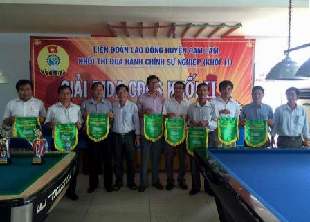 trao cờ lưu niệm cho các đoàn tham gia giải Billards