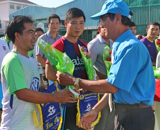 Đ/c Đặng Thuận - Phó Chủ tịch LĐLĐ TP. Nha Trang tặng hoa cho các đội bóng đá
