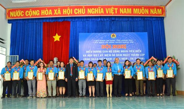 Sáng ngày 25/7/2019, Liên đoàn Lao động huyện Khánh Sơn tổ chức Hội nghị biểu dương cán bộ công đoàn tiêu biểu nhân kỷ niệm 90 năm ngày thành lập Công đoàn Việt Nam (287/1929-28/7/2019). Tham dự Hội nghị có Thường trực Huyện ủy, HĐND, UBND huyện, Lãnh đạo Ban Tổ chức, Ban Chính sách LĐLĐ tỉnh, Lãnh đạo LĐLĐ huyện qua các thời kỳ, cùng Lãnh đạo các Ban ngành, đoàn thể và hơn 70 đoàn viên CĐCS trực thuộc trên địa bàn huyện.