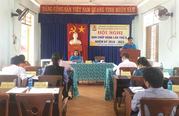 Tại Hội nghị, Ban Chấp hành LĐLĐ huyện đã đánh giá kết quả đạt được trong hoạt động Công đoàn năm 2019. Trong năm vừa qua, LĐLĐ Khánh Sơn đã chỉ đạo, hướng dẫn các cấp công đoàn trong huyện tổ chức thực hiện tốt nhiệm vụ đã đề ra và đạt được những kết quả nổi bật như Chỉ đạo CĐCS phối hợp với chính quyền địa phương tổ chức Hội nghị cán bộ công chức, viên chức đạt tỷ lệ 100%; vận động đoàn viên, CNVC-LĐ đóng góp các loại quỹ xã hội, lập hồ sơ hỗ trợ xây dựng 04 nhà Mái ấm Công đoàn Khánh Hòa cho đoàn viên có hoàn cảnh khó khăn; tổ chức Lễ phát động “Tháng công nhân” và Hội thao CNVCLĐ huyện Khánh Sơn năm 2019; vận động kết mới đoàn viên đạt 100% chỉ tiêu và hoàn thành tốt các chỉ tiêu nhiệm vụ cơ bản khác được giao; đặc biệt tổ chức thành công Lễ kỷ niệm 90 năm ngày thành lập công đoàn Việt Nam và biểu dương 30 cán bộ công đoàn tiêu biểu xuất sắc; …