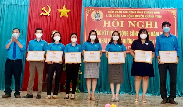 Ghi nhận nhưng thành tích đạt được, Liên đoàn Lao động tỉnh đã trao kỷ niệm chương “Vì sự nghiệp xây dựng tổ chức công đoàn” cho 01 cá nhân, tặng bằng khen cho 14 tập thể và 10 cá nhân; LĐLĐ huyện trao giấy khen cho 17 tập thể, 45 cá nhân có thành tích xuất sắc trong phong trào thi đua và xây dựng tổ chức công đoàn và công nhận trao giấy khen cho 6 tập thể dẫn đầu khối thi đua với tổng số tiền hơn 70 triệu đồng.