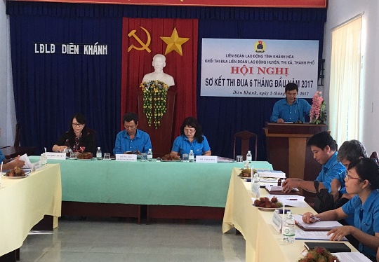 Ngày 05/7/2017, tại LĐLĐ huyện Diên Khánh (trưởng khối), Khối thi đua LĐLĐ huyện, thị xã, thành phố tổ chức Hội nghị sơ kết thi đua 6 tháng đầu năm 2017. Đồng chí Lê Xuân Hải – Phó Chủ tịch thường trực LĐLĐ tỉnh tham dự và chỉ đạo hội nghị.