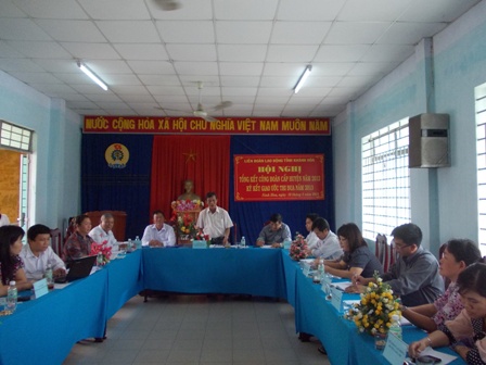 Đ/c Phạm Xuân Danh, Phó Chủ tịch LĐLĐ tỉnh chỉ đạo: Trước mắt, các đơn vị khối huyện cần quan tâm tổ chức các hoạt động tuyên truyền chào mừng Đại hội IX CĐ Khánh Hòa trong thời gian trước, trong và sau Đại hội; trong năm 2013 thực hiện tốt công tác tuyên truyền Nghị quyết Đại hội công đoàn các cấp, Đại hội IX CĐ Khánh Hòa, Đại hội XI CĐ Việt Nam; tiếp tục tuyên truyền, phổ biến sâu rộng đến CNVCLĐ Bộ Luật Lao động, Luật Công đoàn 2012; chăm lo bảo vệ quyền lợi hợp pháp chính đáng của CNVCLĐ trước tình hình một số doanh nghiệp gặp khó khăn trong SXKD, việc làm, thu nhập và các chế độ chính sách về BHXH, BHYT, BHTN của người lao động không bảo đảm…