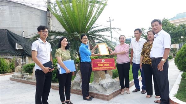 Đ/c Vũ Thị Yên - Chủ tịch Liên đoàn Lao động TP trao Quyết định công nhận công trình