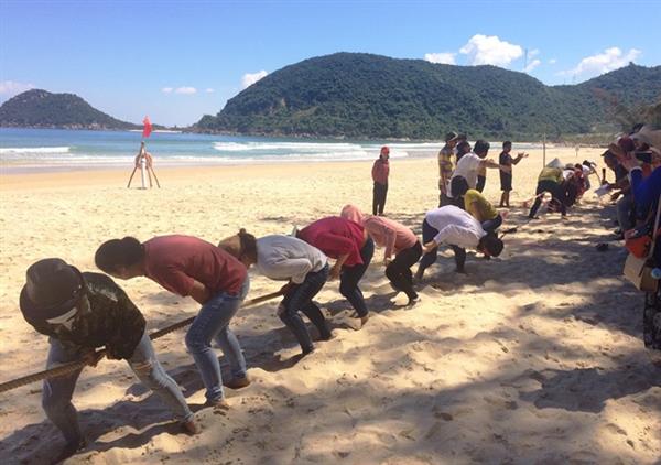 Nữ đoàn viên CĐ huyện Khánh Vĩnh tham gia môn kéo co