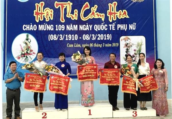 Sáng ngày 06/3, Liên đoàn Lao động huyện Cam Lâm đã phối hợp với Hội Liên hiệp phụ nữ long trọng tổ chức Hội thi cắm hoa với chủ đề “Người phụ nữ Việt Nam” với 500 cán bộ, đoàn viên, hội viên tham gia.