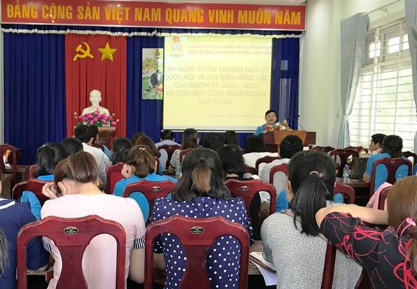 Ngày 30/3, Liên đoàn Lao động huyện(LĐLĐ) Cam Lâm tổ chức Hội nghị tập huấn tuyên truyền bầu cử đại biểu Quốc hội và đại biểu Hội đồng nhân dân (HĐND) các cấp nhiệm kỳ 2021 – 2026. Tham dự hội nghị có 112 cán bộ Công đoàn cơ sở (CĐCS).