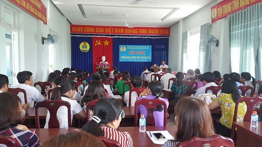 Sáng ngày 02/6, Liê đoàn Lao động huyện Cam Lâm tổ chức hội nghị triển khai Hướng dẫn số 704/HĐ-TLĐ của Tổng Liên đoàn Lao động Việt Nam về việc sắp xếp lại công đoàn ngành địa phương, công đoàn giáo dục cấp huyện. Tham dự hội nghị có đồng chí Nguyễn Nam Hải – Trưởng ban Tổ chức LĐLĐ tỉnh Khánh Hoà, đ/c Nguyễn Minh Trí – Phó bí thư Thường trực huyện uỷ Cam Lâm và gần 50 cán bộ CĐCS các trường học trên địa bàn huyện.