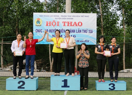 Chiều ngày 1-8, Hội thao CNVCLĐ huyện Diên Khánh lần thứ XIII năm 2016 đã bế mạc. Đồng chí Nguyễn Hòa – UVBCH Tổng LĐLĐVN, Tỉnh ủy viên, Chủ tịch LĐLĐ tỉnh đã đến dự và trao giải thưởng. Cùng dự có lãnh đạo UBND huyện, Phòng Văn hoá - Thể thao huyện Diên Khánh… Đây là một trong những chuỗi hoạt động Chào mừng kỷ niệm 87 năm Ngày thành lập Công đoàn Việt Nam (28/7/1929-28/7/2016) của LĐLĐ huyện Diên Khánh.