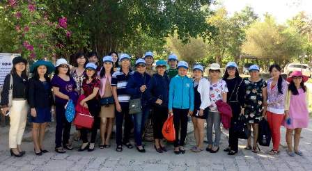 Nữ CNVCLĐ chụp ảnh lưu niệm tại Suối khoáng nóng I-Resort Nha Trang