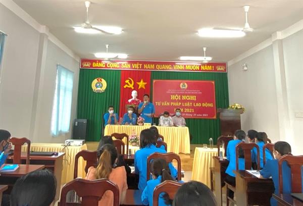 Tại Hội nghị, Liên đoàn Lao động huyện đã tổ chức đối thoại, tư vấn pháp luật cho đoàn viên, người lao động về những vấn đề liên quan trong Bộ luật Lao động 2019, Luật công chức, viên chức, Luật BHXH, BHYT.… đã có gần 20 câu hỏi được gửi đến tổ tư vấn pháp luật thông qua các hình thức như đặt câu hỏi trực tiếp tại hội nghị, câu hỏi qua Email, phiếu yêu cầu tư vấn pháp luật về các vấn đề liên quan đến chế độ nghỉ ốm của người lao động, quy định về độ tuổi nghỉ hưu, quy định về thời gian nghỉ phép, nghỉ hè của giáo viên, chế độ chính sách về BHXH, BHYT đối với người lao động… Những câu hỏi đều được tổ tư vấn trả lời thỏa đáng và hướng dẫn cụ thể cho đoàn viên, NLĐ.