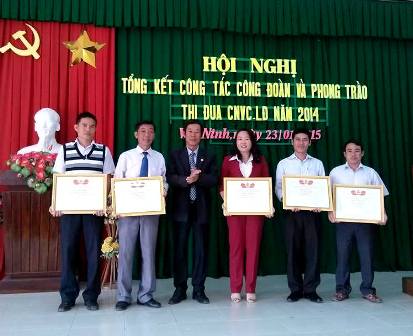 Tại hội nghị LĐLĐ tỉnh đã trao tặng bằng khen cho 06 tập thể và 06 cá nhân; LĐLĐ huyện biểu dương khen thưởng 06 tập thể và 06 cá nhân, tặng giấy khen của LĐLĐ huyện cho 18 tập thể và 91 cá nhân đã có nhiều thành tích xuất sắc trong phong trào thi đua yêu nước năm 2014.