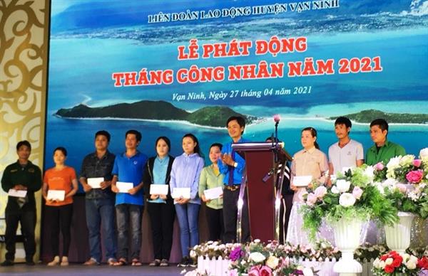 Tại lễ phát động, đồng chí Nguyễn Thành Trung - Chủ tịch LĐLĐ huyện Vạn Ninh đã ôn lại ý nghĩa lịch sử ngày Quốc tế lao động 1/5, Và phát động Tháng công nhân năm 2021 với chủ đề: “Đoàn kết, sáng tạo, vượt khó, phát triển” nhằm đẩy mạnh các hoạt động tuyên truyền, phổ biến giáo dục pháp luật cho công nhân, tập trung vào Bộ luật lao động, Luật Công đoàn và các văn bản pháp luật liên quan đến quyền, lợi ích hợp pháp, chính đáng của người lao động; Vận động đoàn viên, công nhân viên chức lao động tích cực hưởng ứng phong trào thi đua do công đoàn các cấp, các ngành phát động. Đồng thời chủ động phối hợp với chính quyền biểu dương điển hình trong lao động sản xuất, chia sẻ và hỗ trợ cho đoàn viên công đoàn có hoàn cảnh khó khăn. Tổ chức các hoạt động văn hóa thể thao, tạo khí thế và sân chơi lành mạnh cho người lao động .