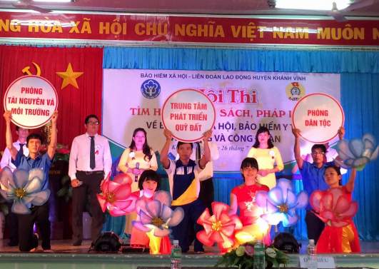Góp phần nâng cao kiến thức pháp luật lao động và công đoàn cho CNVCLĐ, chào mừng 87 năm thành lập Công đoàn Việt Nam (28/7/1929-28/7/2016), ngày 26-7, Liên đoàn Lao động huyện phối hợp với Bảo hiểm xã hội huyện Khánh Vĩnh tổ chức Hội thi "Tìm hiểu chính sách pháp luật về BHXH, BHYT, Luật Lao động và Công đoàn" năm 2016.