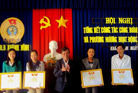 Ngày 22/01, tại Liên đoàn Lao động huyện Khánh Vĩnh, tổ chức Hội nghị tổng kết hoạt động Công đoàn năm 2014 và triển khai nhiệm vụ công tác năm 2015. Tham dự hội nghị có các đồng chí: Phạm Xuân Danh – Phó Chủ tịch LĐLĐ tỉnh, đồng chí Cao Văn Bao – Phó Ban Dân Vận huyện ủy…