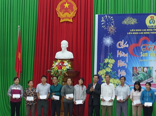 Chiều ngày 19/01, Liên đoàn Lao động thành phố Cam Ranh tổ chức Chương trình “Tết Sum vầy năm 2017” cho đoàn viên, CNVCLĐ. Về dự có ông Lê Xuân Hải - Phó Chủ tịch Thường trực LĐLĐ tỉnh Khánh Hòa, ông Ngô Hữu Hiền - Phó Chủ tịch HĐND thành phố và bà Võ Thị Diệu Thảo - Phó Chủ tịch Ủy ban Mặt trận TQVN thành phố Cam Ranh.