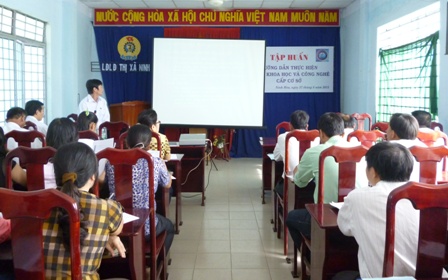 Cùng ngày, LĐLĐ thị xã Ninh Hòa phối hợp với Ban Chính sách Pháp luật LĐLĐ tỉnh và Sở Khoa học – Công nghệ tỉnh Khánh Hòa tổ chức lớp tập huấn “Hướng dẫn thực hiện đề tài khoa học và công nghệ cấp cơ sở” cho 54 cán bộ Công đoàn cơ sở trực thuộc. Mục tiêu nâng cao kỹ năng, phương pháp thực hiện đề tài nghiên cứu khoa học cấp cơ sở cho cán bộ CĐ và kỹ năng tổ chức phong trào thi đua lao động sáng tạo trong công nhân viên chức lao động.