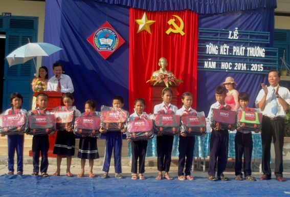trao cặp phao cho các học sinh có hoàn cảnh khó khăn