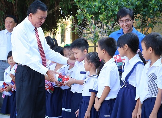 trao vở và dụng cụ học tập cho học sinh trường Tiểu học Ninh Thủy có hoàn cảnh khó khăn