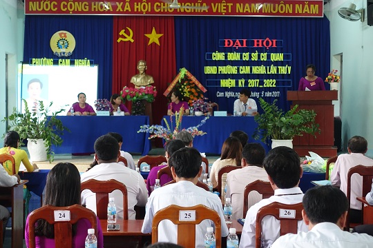 Mới đây, Công đoàn cơ sở Viện Kiểm sát Nhân dân và Cơ quan UBND phường Cam Nghĩa tiến hành tổ chức đại hội công đoàn cơ sở, nhiệm kỳ 2017- 2022. Đây là 02 đơn vị được chọn làm đại hội điểm thuộc Liên đoàn Lao động thành phố Cam Ranh. Ông Trần Khánh Hòa - Chủ tịch LĐLĐ thành phố Cam Ranh về chỉ đạo Đại hội.