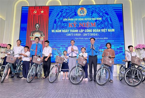 Nhân dịp này, thừa ủy quyền của Tổng Liên đoàn Lao động Việt Nam, LĐLĐ tỉnh trao 01 kỷ niệm chương “Vì sự nghiệp xây dựng tổ chức Công đoàn” cho đồng chi Võ Thị Kim Thảo Ủy viên BCH CĐCS Trường tiểu học Vạn Bình; LĐLĐ huyện biểu dương 05 tập thể, 16 cá nhân lcó nhiều đóng góp cho tổ chức Công đoàn; trao tặng cho 10 xe đạp đến trường cho các con em học sinh nghèo vượt khó tiêu biểu của đoàn viên, người lao động ; trao hỗ trợ 80 suất quà cho đoàn viên, người lao động khó khăn trên địa bàn huyện.