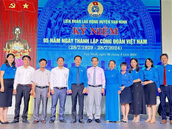 Chiều ngày 6/8, Liên đoàn lao động (LĐLĐ) huyện Vạn Ninh tổ chức Kỷ niệm 95 năm Ngày thành lập Công đoàn Việt Nam (28/7/1929 - 28/7/2024). Dự buổi kỷ niệm có đồng chí Phan Thanh Liêm - Chủ tịch LĐLĐ tỉnh Khánh Hoà; đồng chí Nguyễn Thái Nguyên, Phó Bí thư Thường trực Huyện uỷ Vạn Ninh; lãnh đạo ban Dân vận, ban Tuyên giáo, Uỷ ban MTTQ Việt Nam cùng toàn thể cán bộ, đoàn viên công đoàn trên địa bàn huyện.