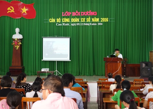 Thực hiện chương trình “Nâng cao chất lượng và hiệu quả hoạt động của đội ngũ cán bộ công đoàn”, Chiều ngày 9/8, Liên đoàn Lao động thành phố Cam Ranh phối hợp với Trung tâm Bồi dưỡng chính trị thành phố tổ chức khai mạc lớp bồi dưỡng cán bộ công đoàn cơ sở năm 2016 với gần 100 cán bộ công đoàn đến từ các CĐCS trực thuộc tham dự.