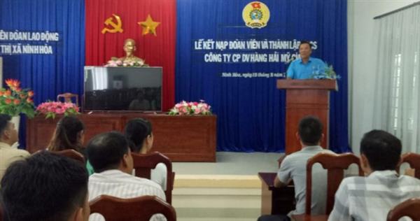Sáng ngày 15/8/2019, tại cơ quan Liên đoàn Lao động thị xã Ninh Hòa vừa tổ chức Lễ kết nạp đoàn viên và thành lập Công đoàn cơ sở Công ty cổ phần Dịch vụ Hàng Hải Mỹ Giang.