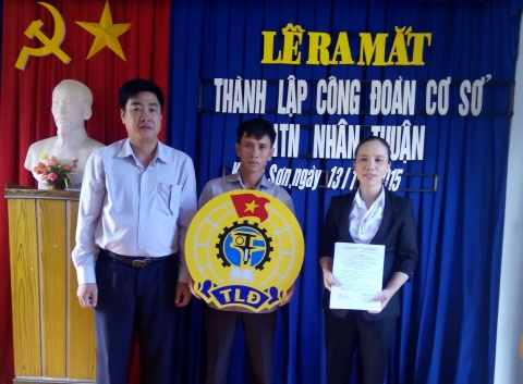 Sau một thời gian khảo sát và vận động DNTN Nhân Thuận, ngành nghề hoạt động chủ yếu thi công xây dựng các công trình dân dụng cầu đường và thủy lợi. Sáng ngày 13/10, LĐLĐ huyện Khánh Sơn tổ chức lễ ra mắt Ban Chấp hành Công đoàn cơ sở Công ty và kết nạp 09 đoàn viên mới.
