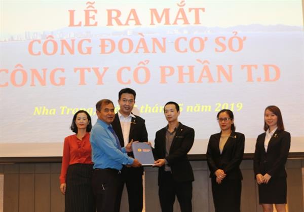 Ngày 7/5/2019, Liên đoàn Lao động thành phố Nha Trang tổ chức Lễ ra mắt Công đoàn cơ sở Công ty cổ phần T.D. Tham dự có đồng chí Lê Quang Nhất – Phó Chủ tịch LĐLĐ thành phố Nha Trang, lãnh đạo Công ty cùng gần 300 công nhân lao động Công ty cổ phần T.D.
