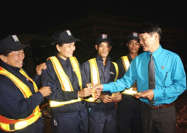 Tối 4-2 (tức 30 Chạp), Liên đoàn Lao động TP. Nha Trang, tỉnh Khánh Hòa tổ chức đoàn công tác thăm hỏi chúc Tết và tặng quà cho các công nhân vệ sinh môi trường của Xí nghiệp môi trường thuộc Công ty Cổ phần Môi trường đô thị Nha Trang.