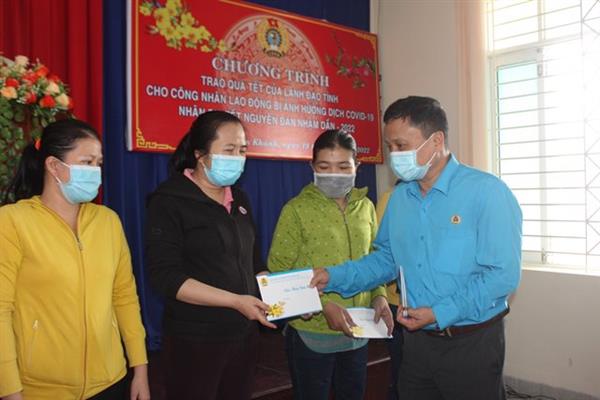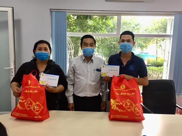Đ/c Bùi Đăng Thành - Phó Chủ tịch LĐLĐ tỉnh KH trao tặng quà tết Nhâm Dần cho đoàn viên CĐCS Công ty TNHH SXTM Việt Phát