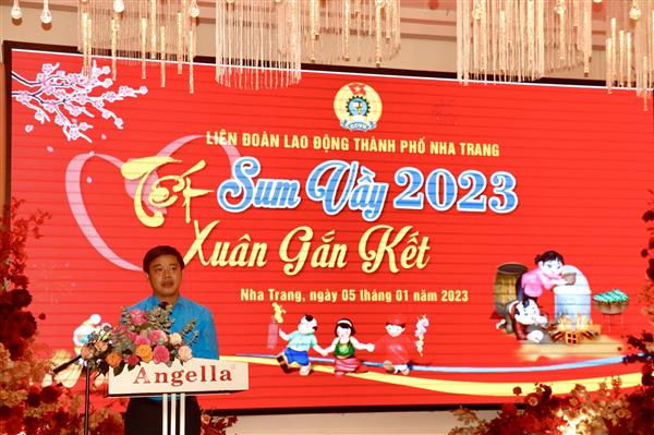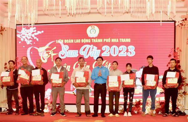 Hòa trong không khí vui tươi, phấn khởi chào đón Xuân mới, Liên đoàn lao động thành phố Nha Trang tổ chức chương trình “Tết sum vầy – Xuân gắn kết” năm 2023 cho công nhân lao động có hoàn cảnh khó khăn trên địa bàn thành phố. Đến dự chương trình có các đồng chí: Bùi Hoài Nam – Uỷ viên Ban Chấp hành Tổng LĐLĐ Việt Nam, Tỉnh ủy viên, Chủ tịch Liên đoàn lao động tỉnh Khánh Hòa; Nguyễn Thế Sinh – Phó Bí thư Thường trực Thành ủy Nha Trang, Chủ tịch HĐND thành phố.