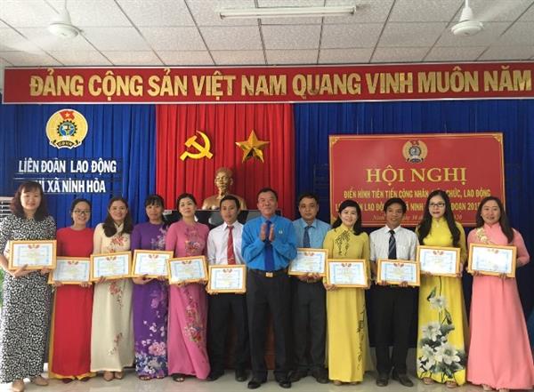 Đ/c Nguyễn Ngọc Phụng - Chủ tịch LĐLĐ thị xã Ninh Hòa biểu dương các cá nhân tiêu biểu