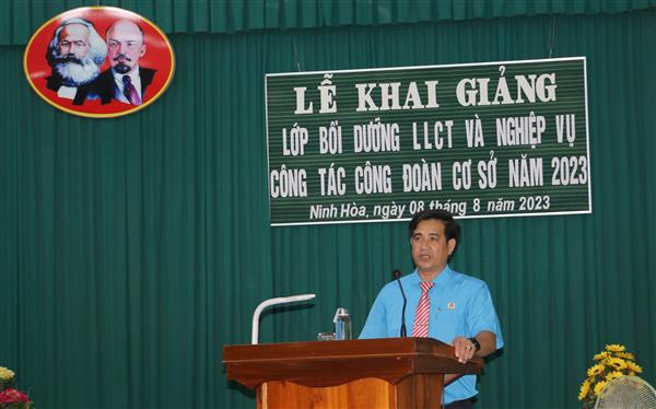 Tại buổi Lễ khai giảng, đồng chí Phan Xuân Hòa – Phó Bí thư thường trực Thị ủy Ninh Hòa đã nhấn mạnh: Cán bộ công đoàn là những người trực tiếp tổ chức các hoạt động để bảo vệ quyền lợi, lợi ích hợp pháp, chính đáng của các công đoàn viên, do đó sau Đại hội Công đoàn cơ sở và Đại hội XI Công đoàn thị xã Ninh Hòa nhiệm kỳ 2023 - 2028, Liên đoàn Lao động thị xã phối hợp với Trung tâm Chính trị thị xã Ninh Hòa tổ chức tập huấn bồi dưỡng lý luận chính trị và trang bị, cập nhật kiến thức, kỹ năng, nghiệp vụ công đoàn cho cán bộ công đoàn cơ sở là việc làm rất cần thiết để cán bộ các cấp Công đoàn cơ sở hoàn thành tốt nhiệm vụ, nhất là trong việc bảo vệ quyền lợi hợp pháp, chính đáng của đoàn viên, người lao động.