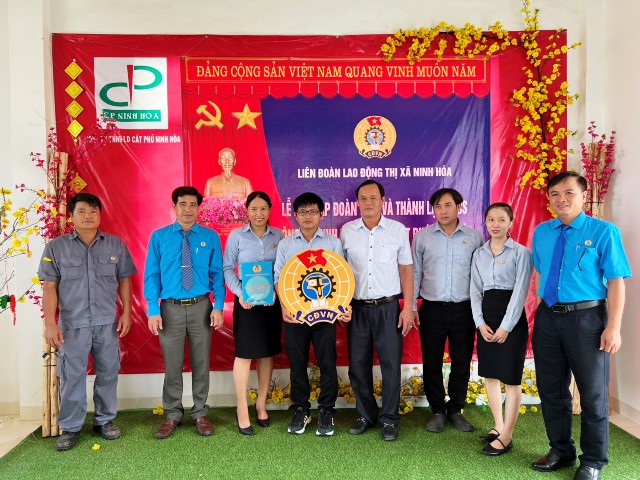 Nằm trong chuỗi hoạt động hướng về cơ sở, Liên đoàn Lao động thị xã Ninh Hòa đã kết nạp đoàn viên, trao quyết định thành lập công đoàn cơ sở Công ty TNHH Liên doanh Cát Phú Ninh Hòa. Tham dự buổi Lễ có đ/c Nguyễn Hữu Nam – Thị ủy viên, Chủ tịch LĐLĐ thị xã; ông Lưu Văn Chánh – Phó Tổng Giám đốc Công ty TNHH Liên doanh Cát Phú Ninh Hòa.